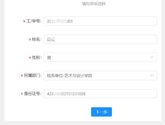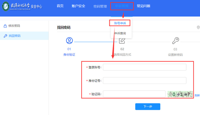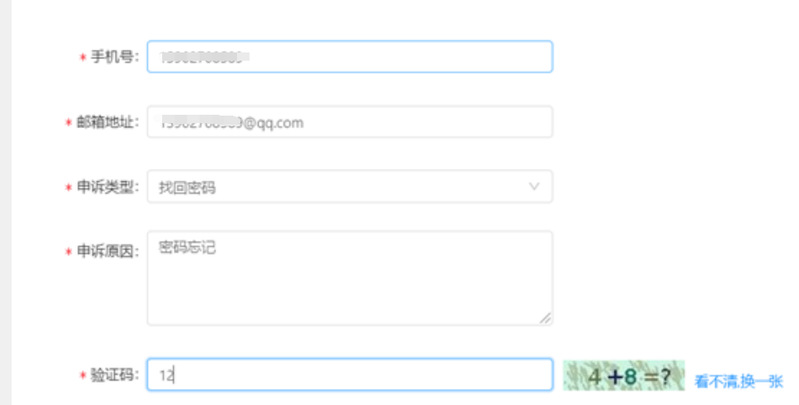 2. 点击菜单栏申述管理进行账号申述并填写个人信息
