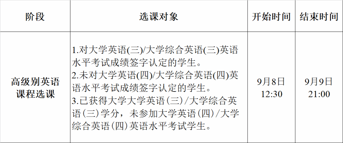 根据教学工作安排,现组织进行2025-2026学年第一学期2024级大学(综合)英语(四)课程的选课,具体安排如下: